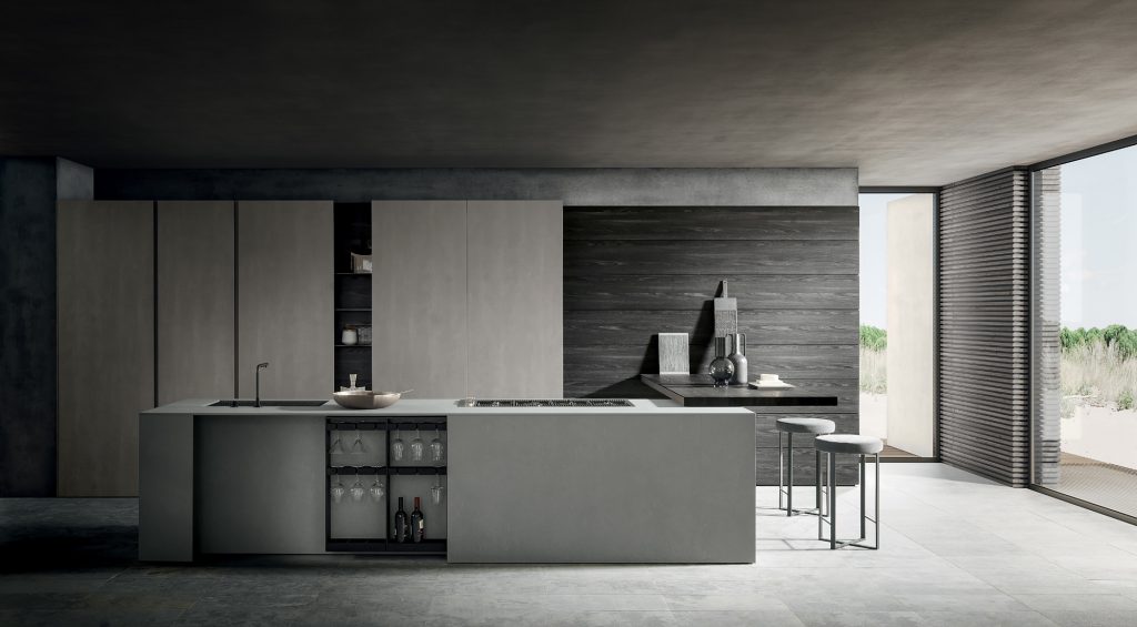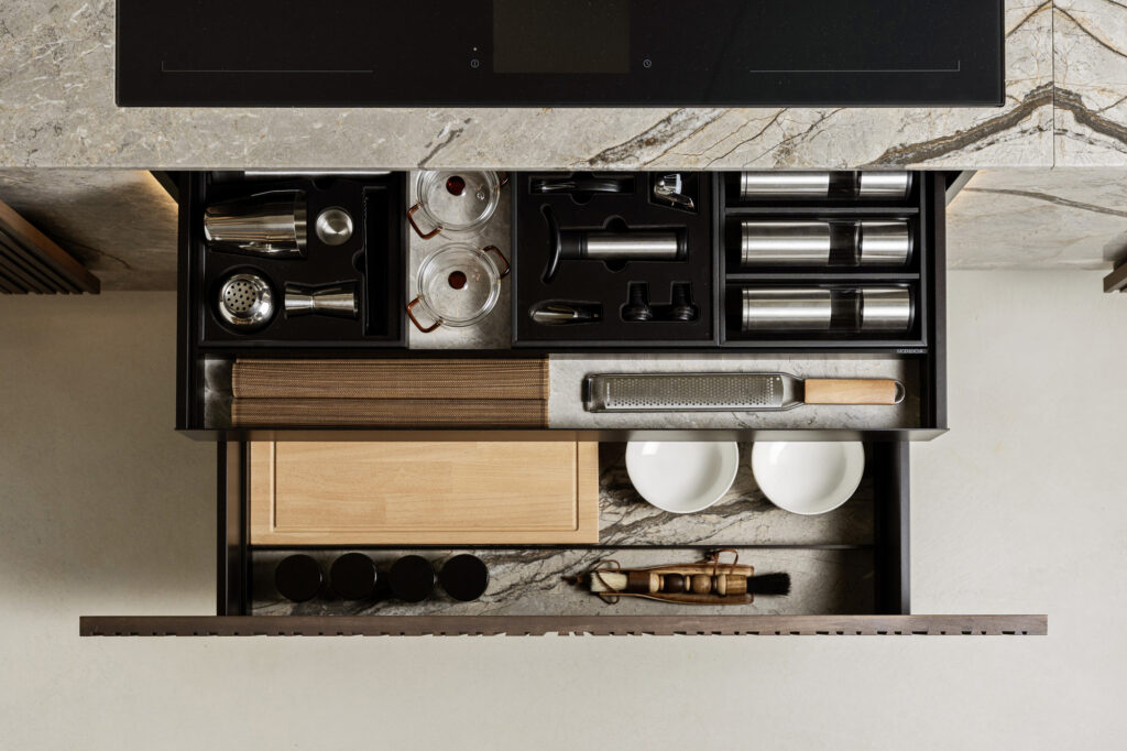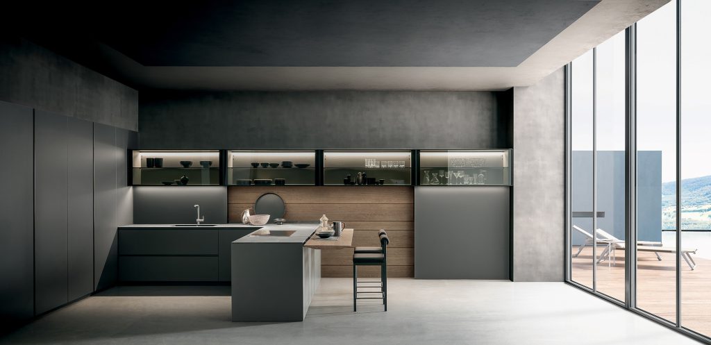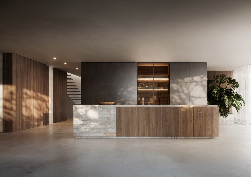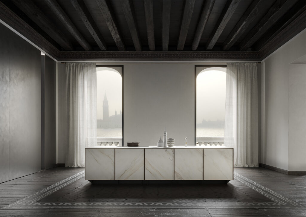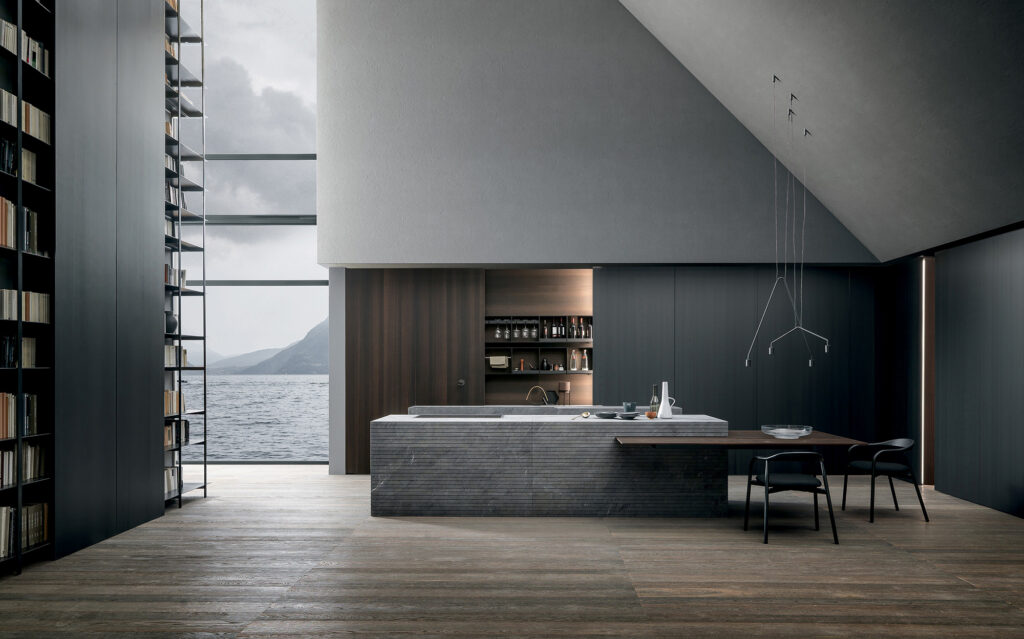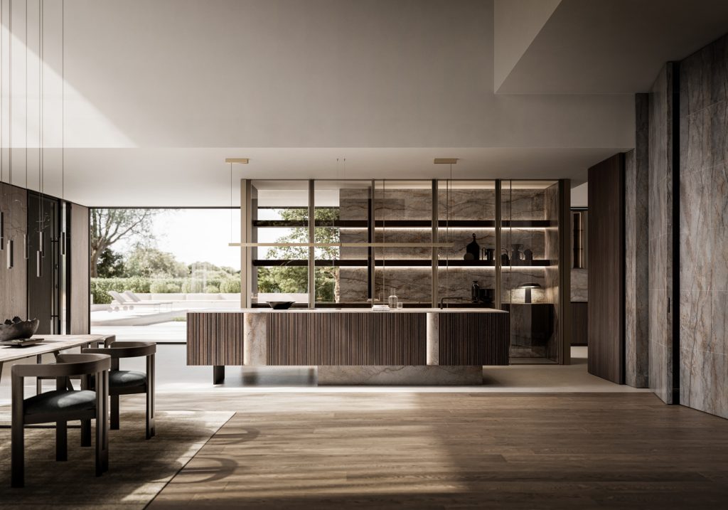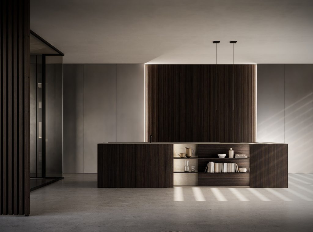 Spazio operativo, essenza domestica. Superfici pure, volumi calibrati: la cucina diventa architettura quotidiana.