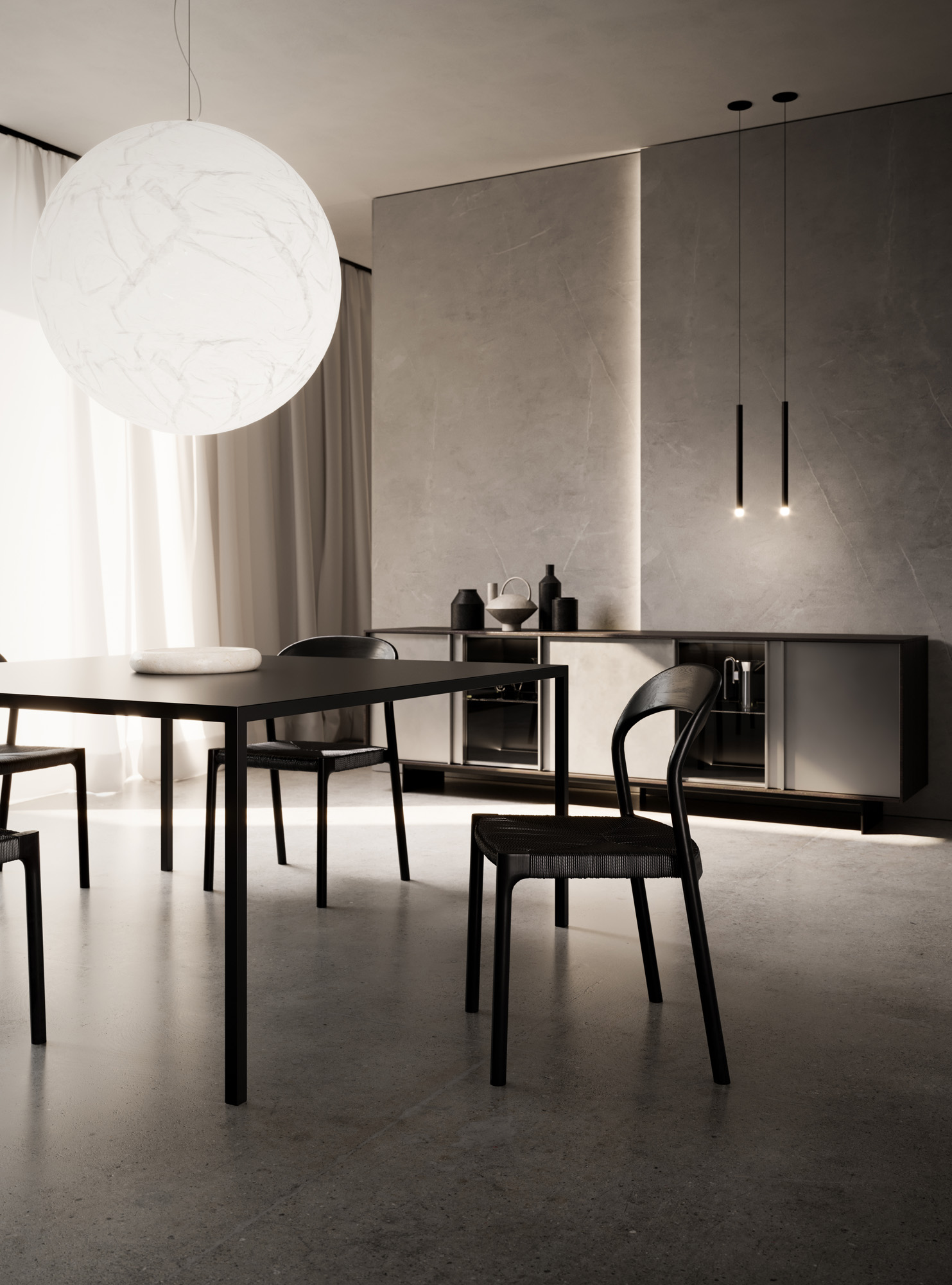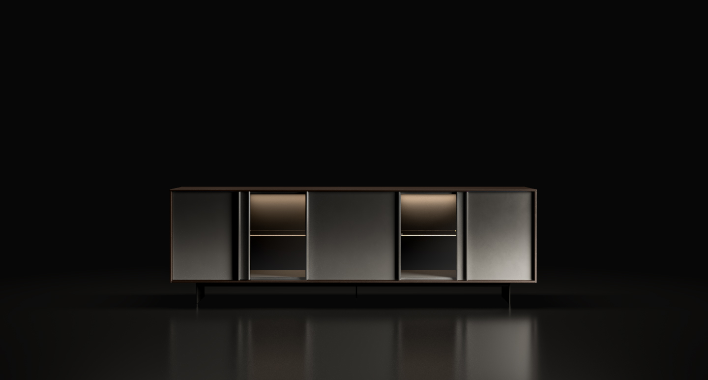 Concept 06GlassLa madia Glass introduce nello spazio una presenza misurata, capace di unire contenimento ed eleganza in un unico gesto. Il volume in metallo Dust ne definisce il rigore, mentre l’anta apre la composizione a trasparenze e luce, amplificandone la profondità. Nel progetto casa, la madia assume un ruolo che va oltre la funzione: organizza, espone, custodisce.