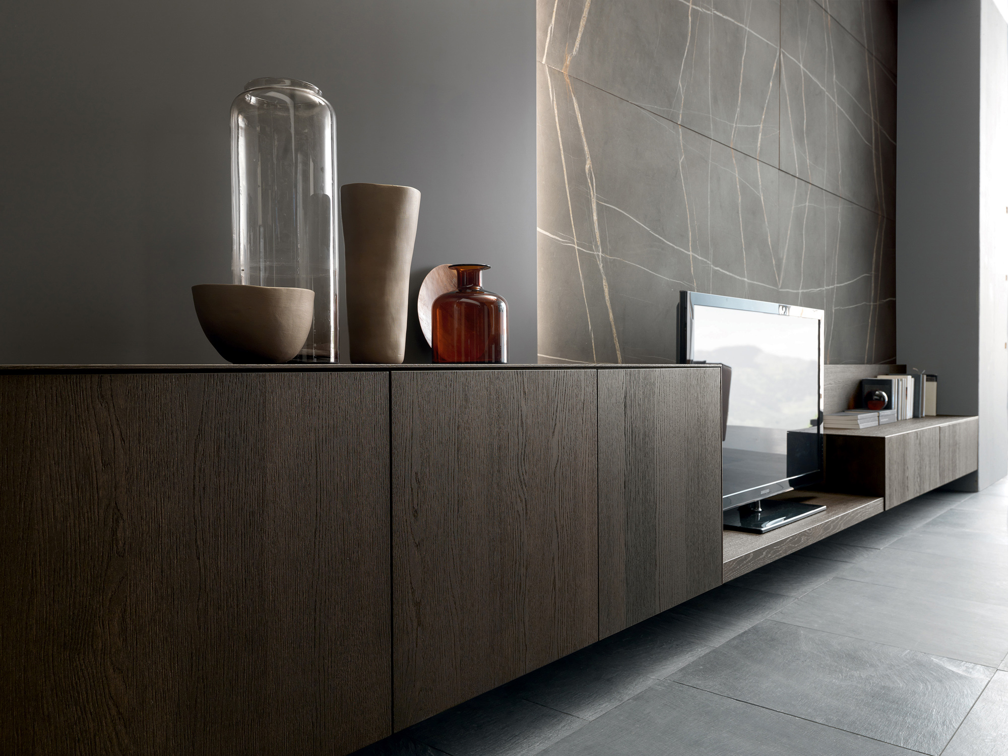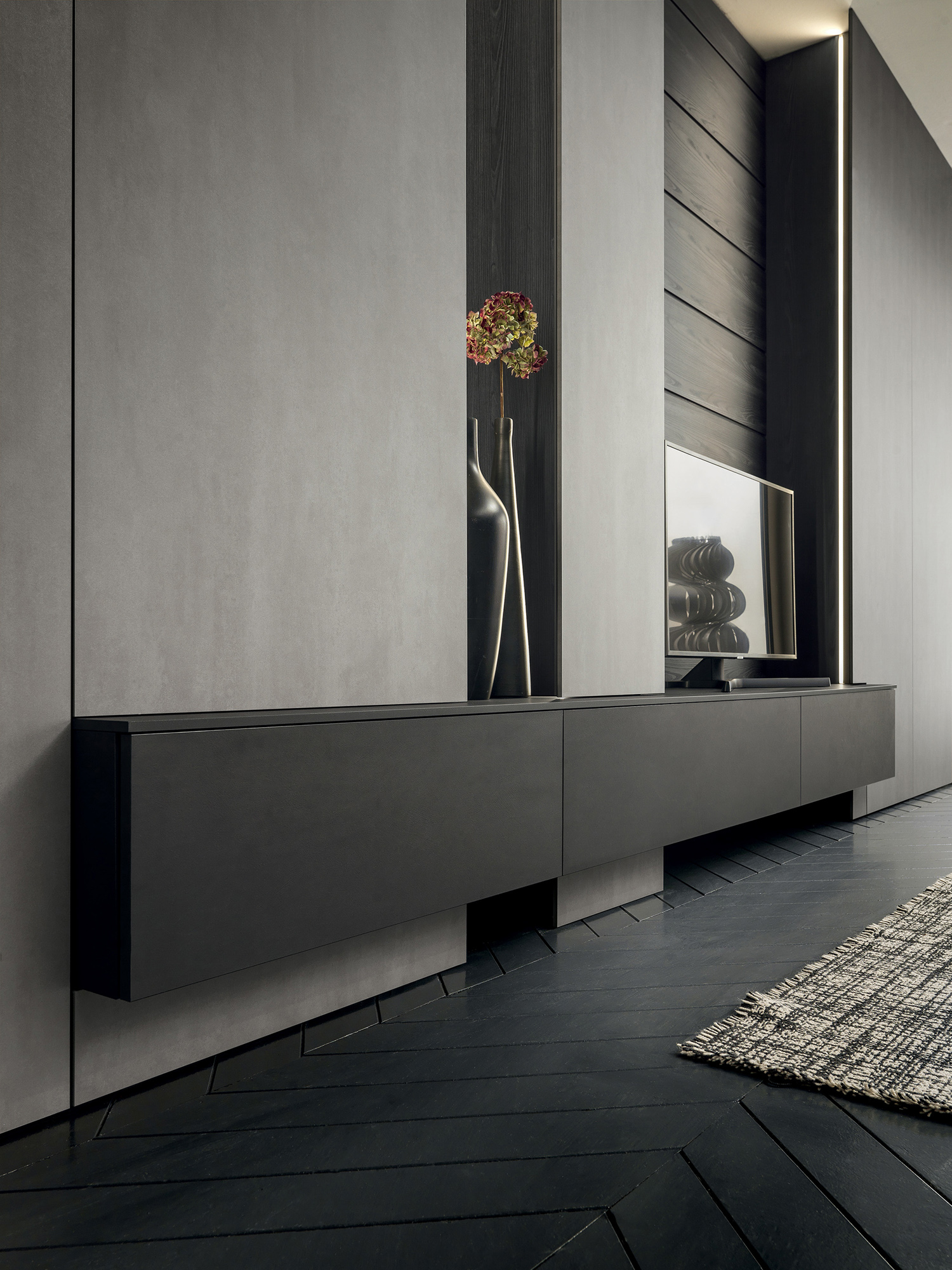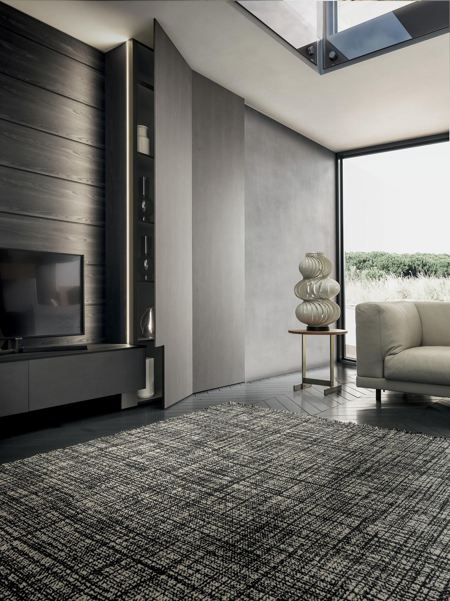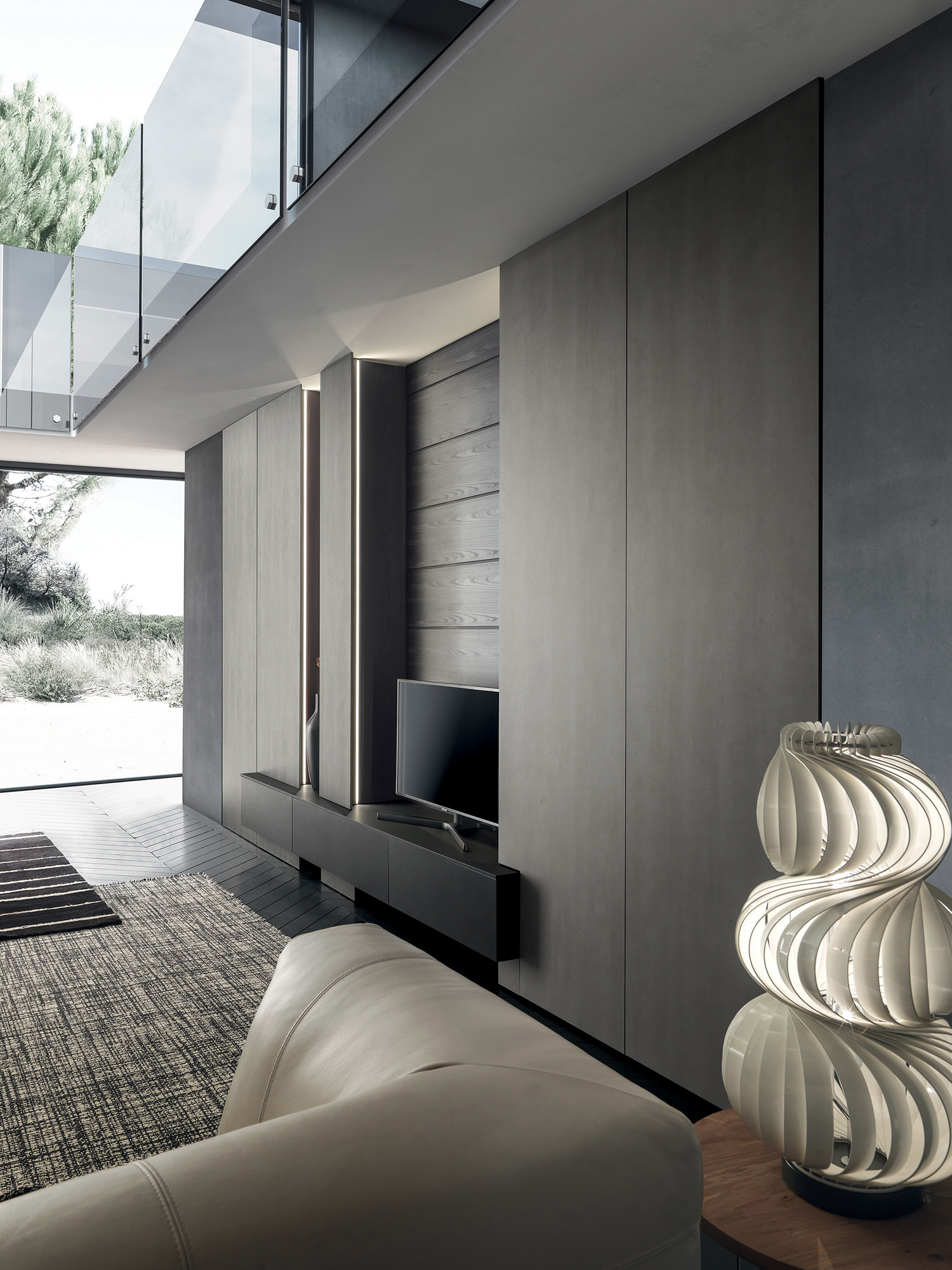 Ogni dettaglio è progettato per offrire funzionalità evoluta senza compromettere l’armonia visiva, dando vita a un living che dialoga in perfetta continuità con l’ambiente circostante