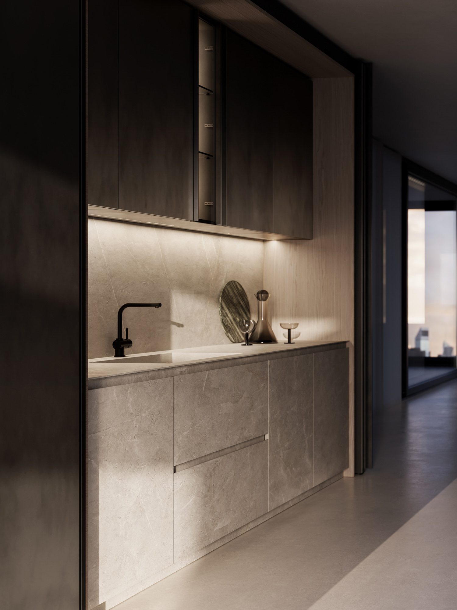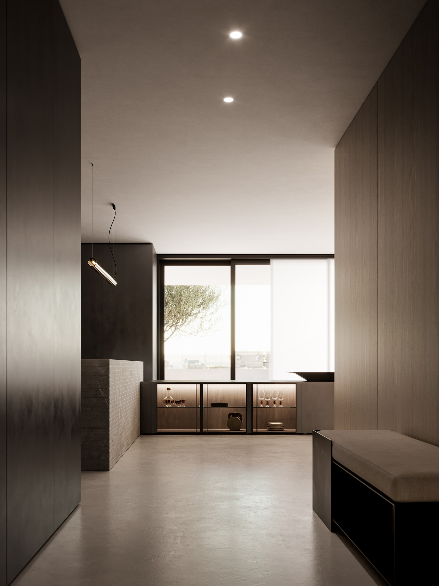 L’ambiente si trasforma in un’esperienza percettiva, dove design materia e luce costruiscono una dimensione emozionale.