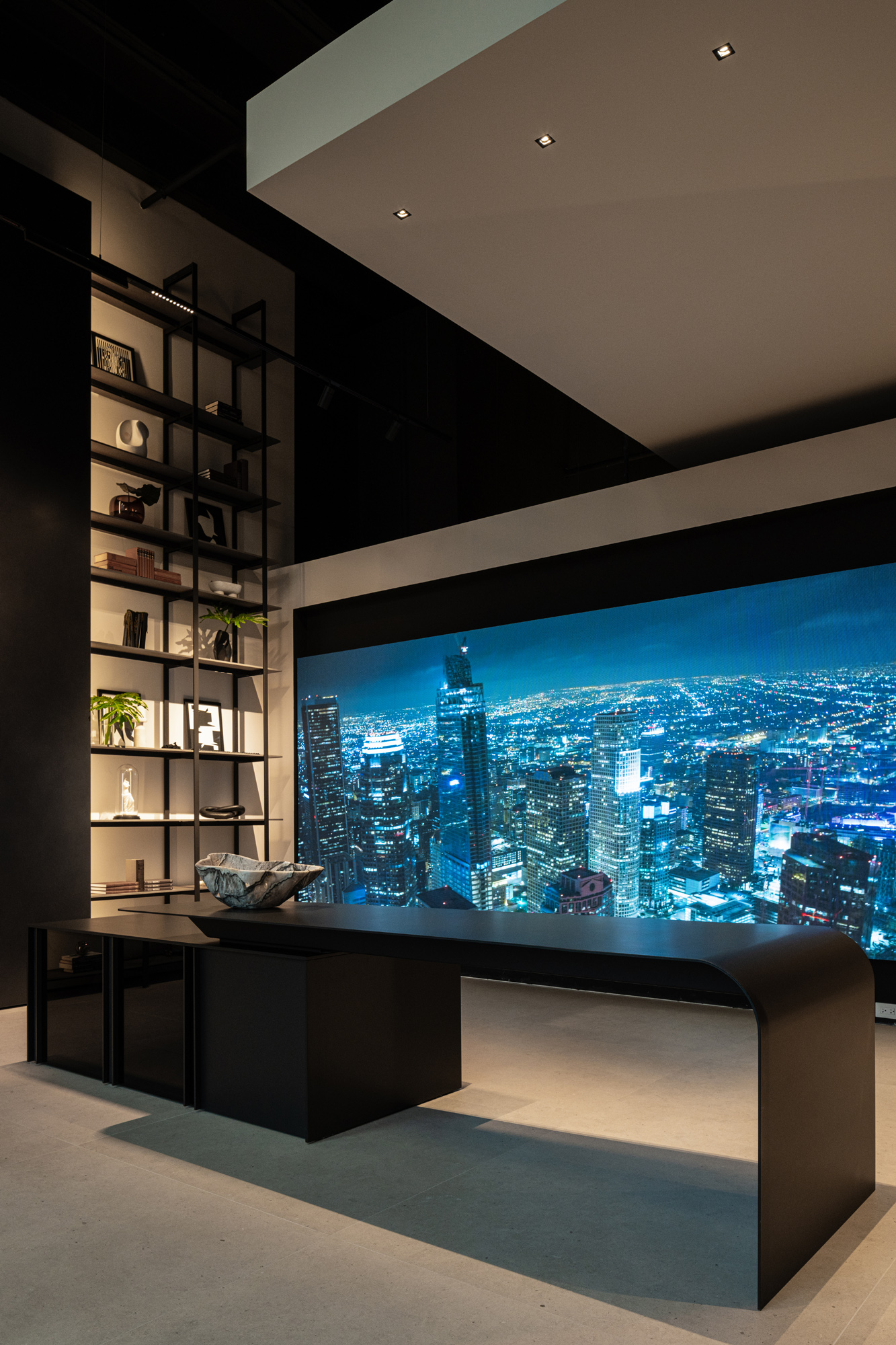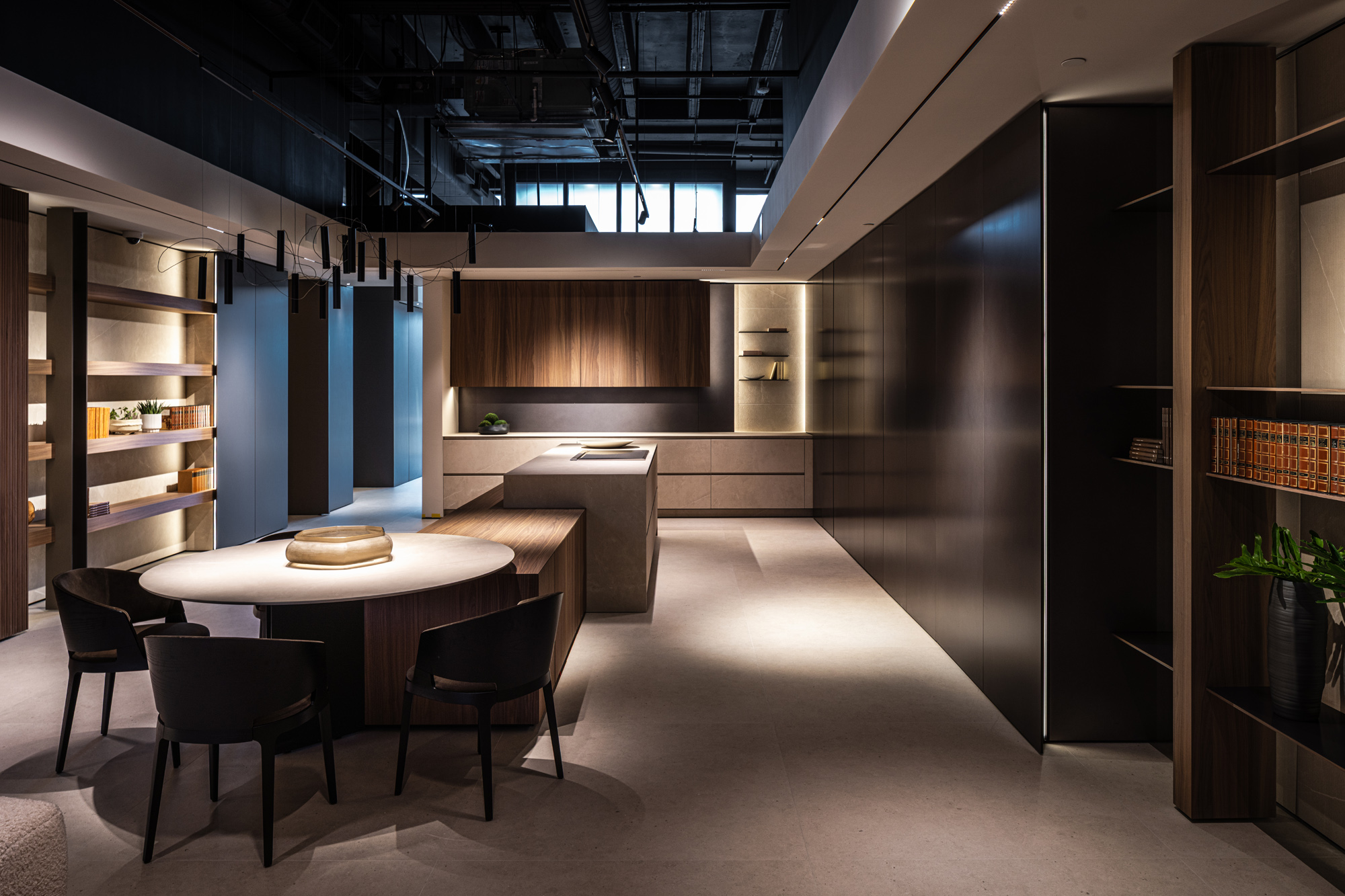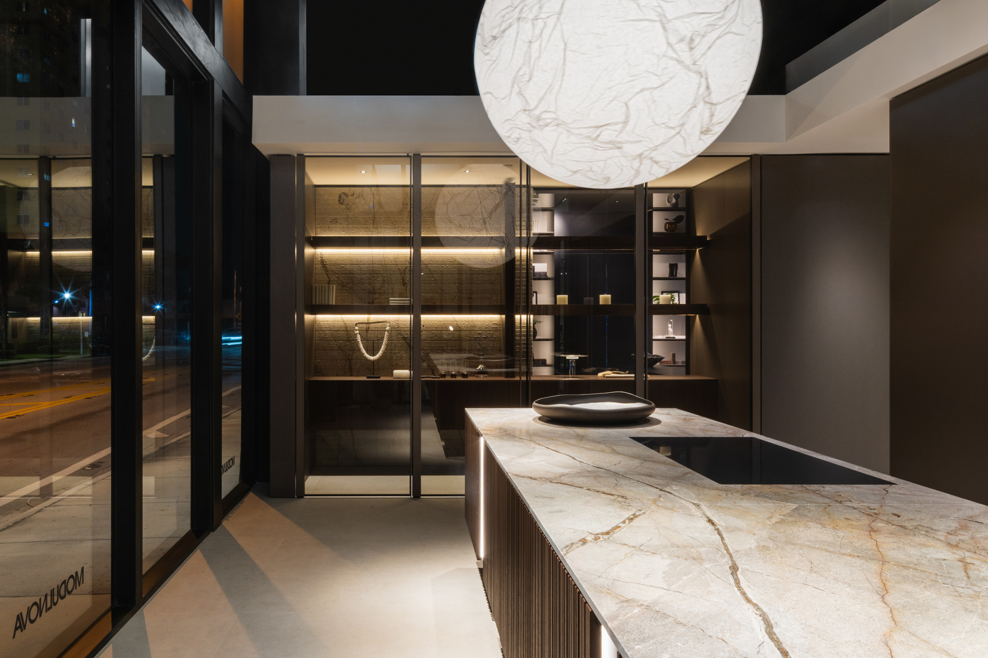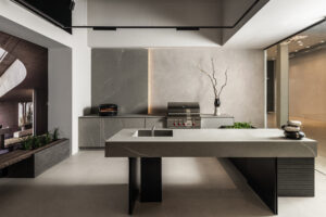 I materiali sono selezionati per le loro qualità estetiche e performative: pietre naturali dalle venature profonde, legni dalle texture autentiche e tattili, laccati opachi che restituiscono superfici continue e minimali, fino a metalli e finiture tecniche che introducono accenti contemporanei e raffinati. La lavorazione accurata esalta la matericità senza comprometterne la pulizia formale, creando un linguaggio coerente e sofisticato.